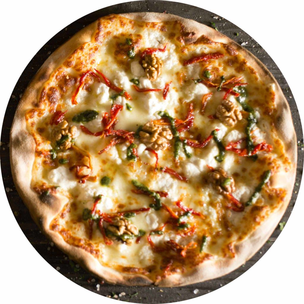 ピリッと辛い唐辛子とクリーミーなチーズで何枚でも食べられるピザです。